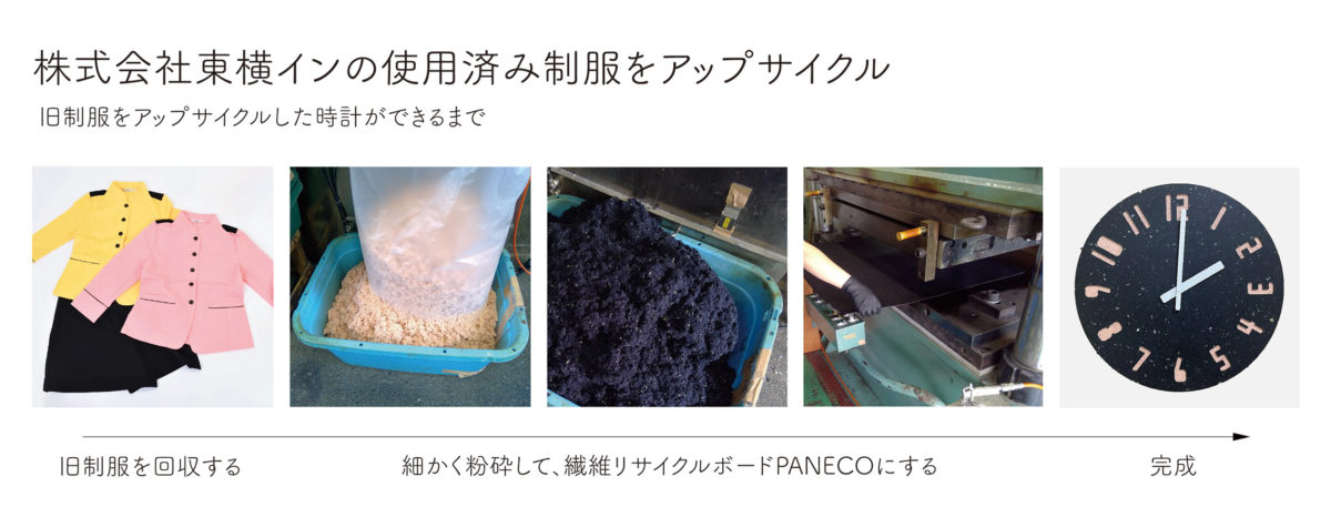 東横インの旧制服をアップサイクルしたPANCO CLOCKが国内ホテルに設置されます。