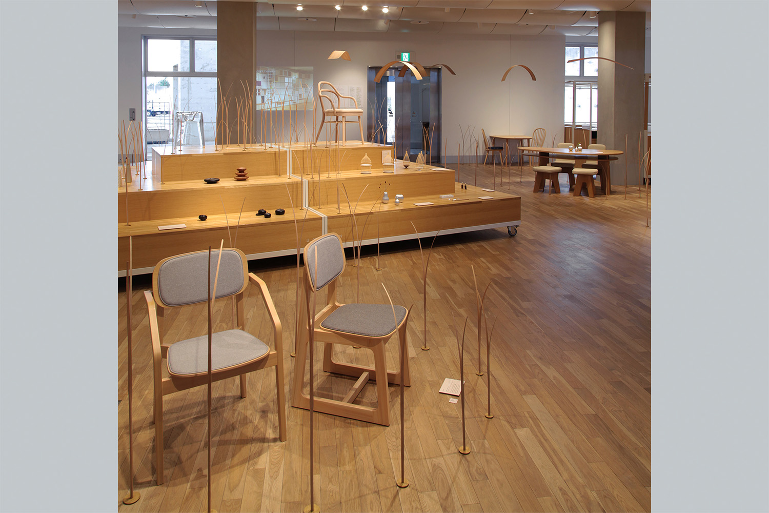 五十嵐久枝が独立した1993年から製作した家具、プロダクト、遊具など約40点を集めた展示。どんなに小さなモノも周囲に影響を与えることから、デザインの持つ関係性をテーマに会場を構成しました。